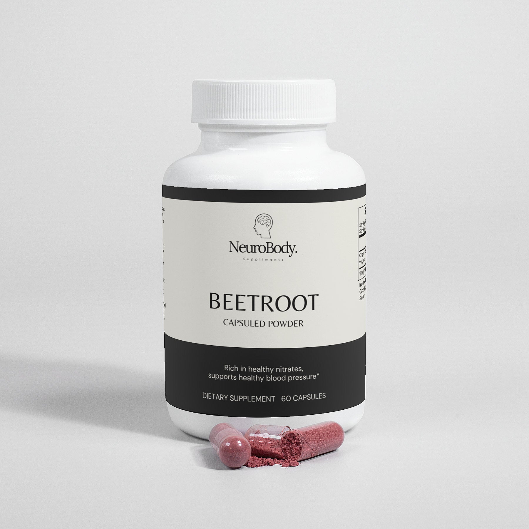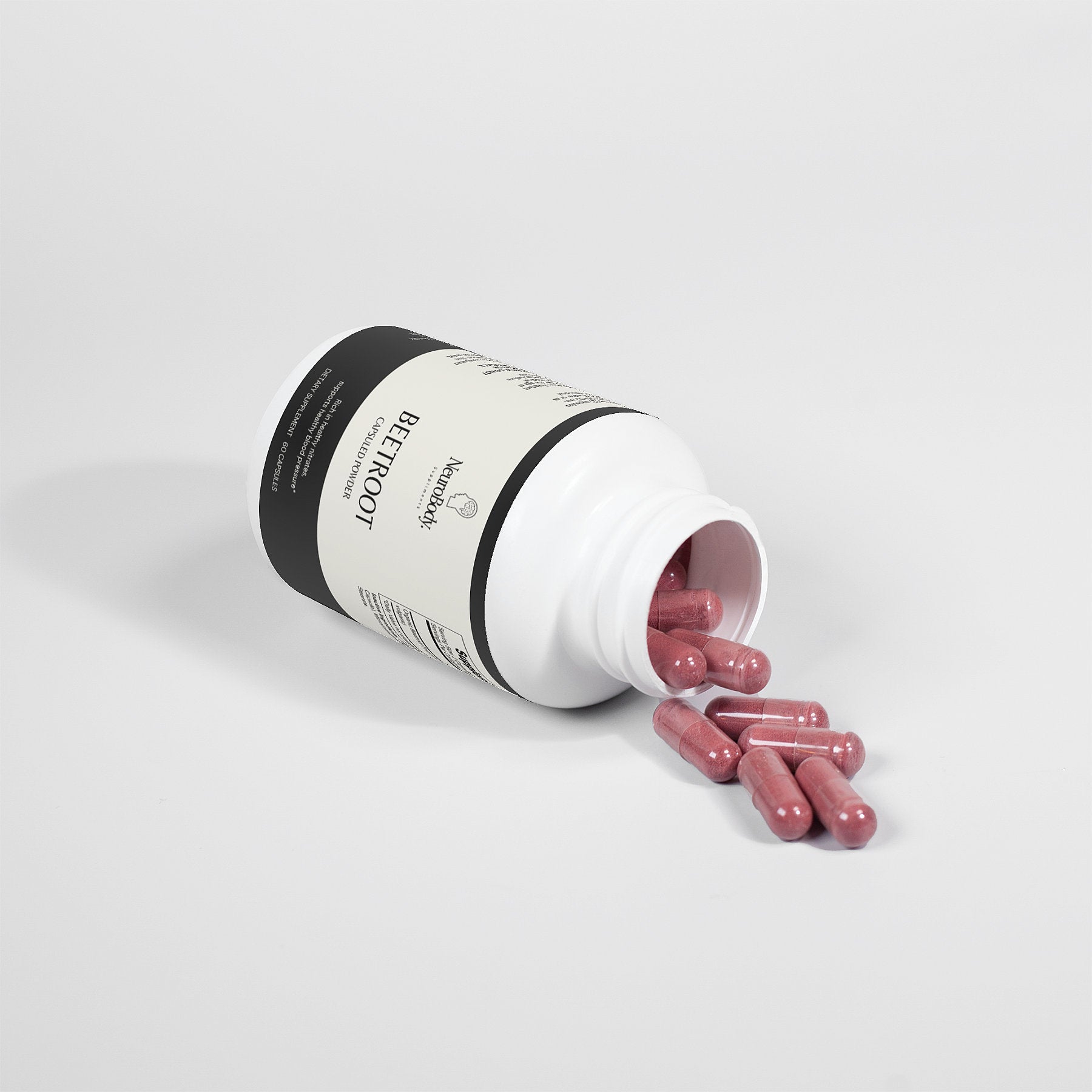 Ingredients: Organic Beetroot Powder (beta vulgaris), Cellulose (Vegetable Capsule), Microcrystalline Cellulose, Magnesium Stearate.