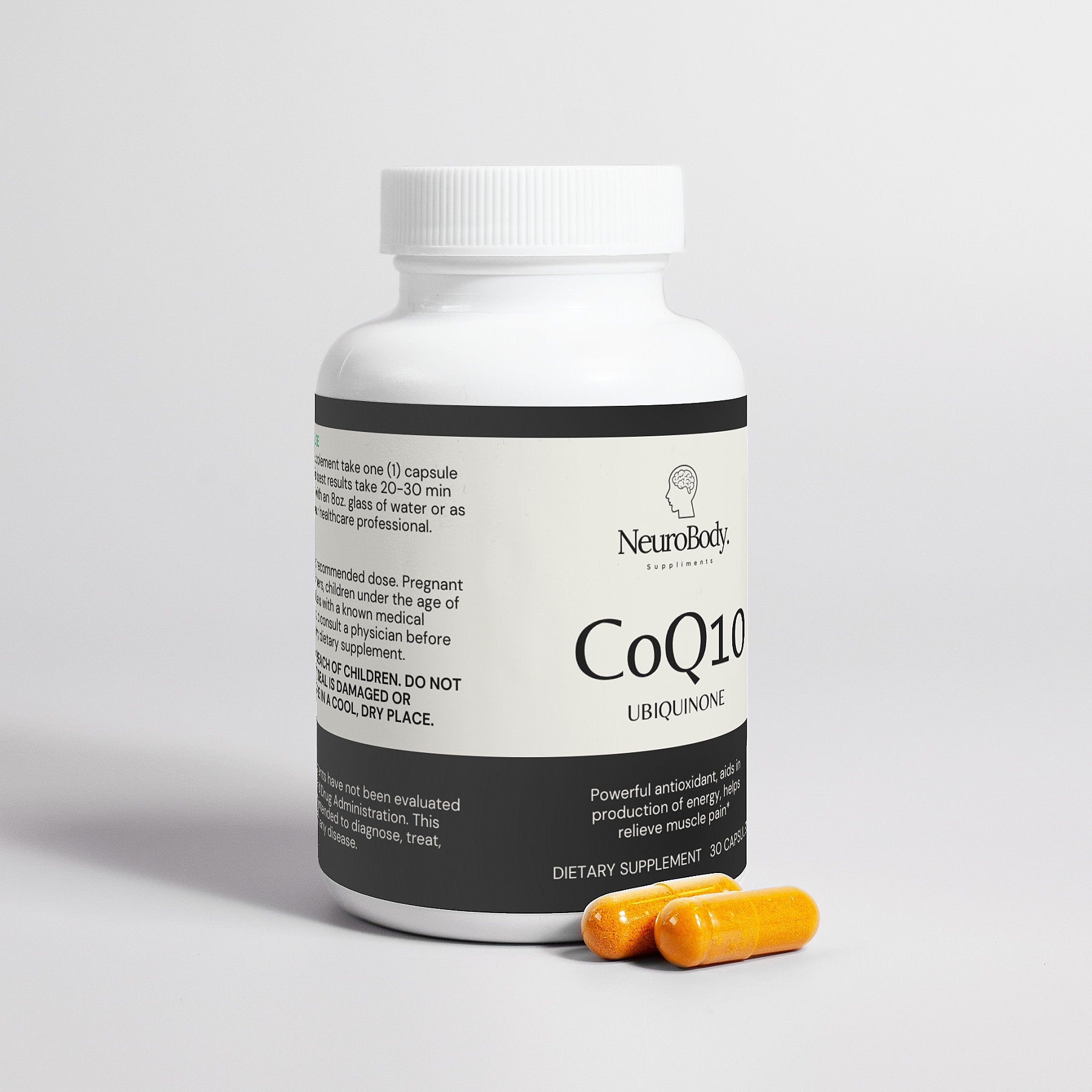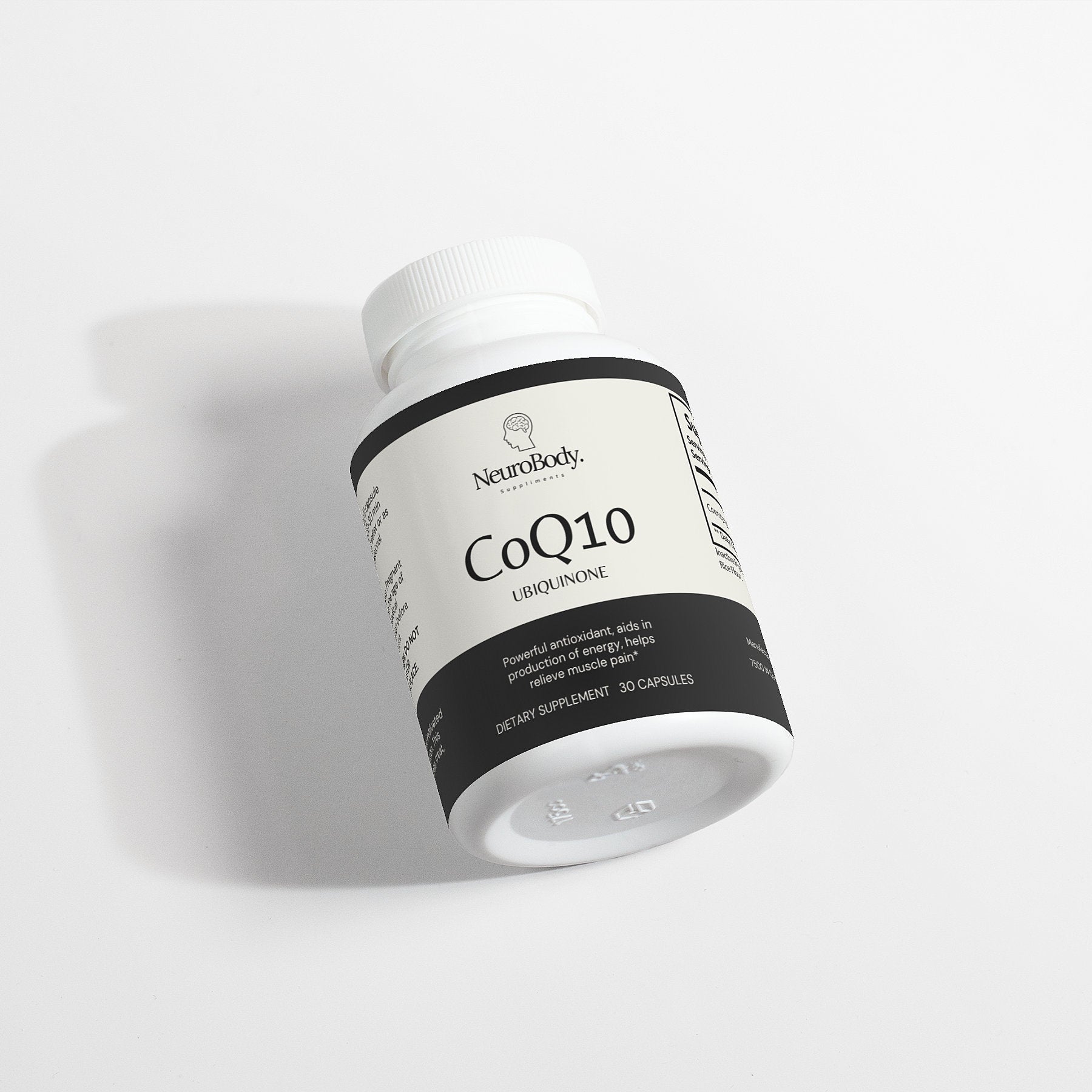 Ingredients: Coenzyme Q-10 (Ubiquinone), Cellulose (vegetable capsule), Rice Flour.