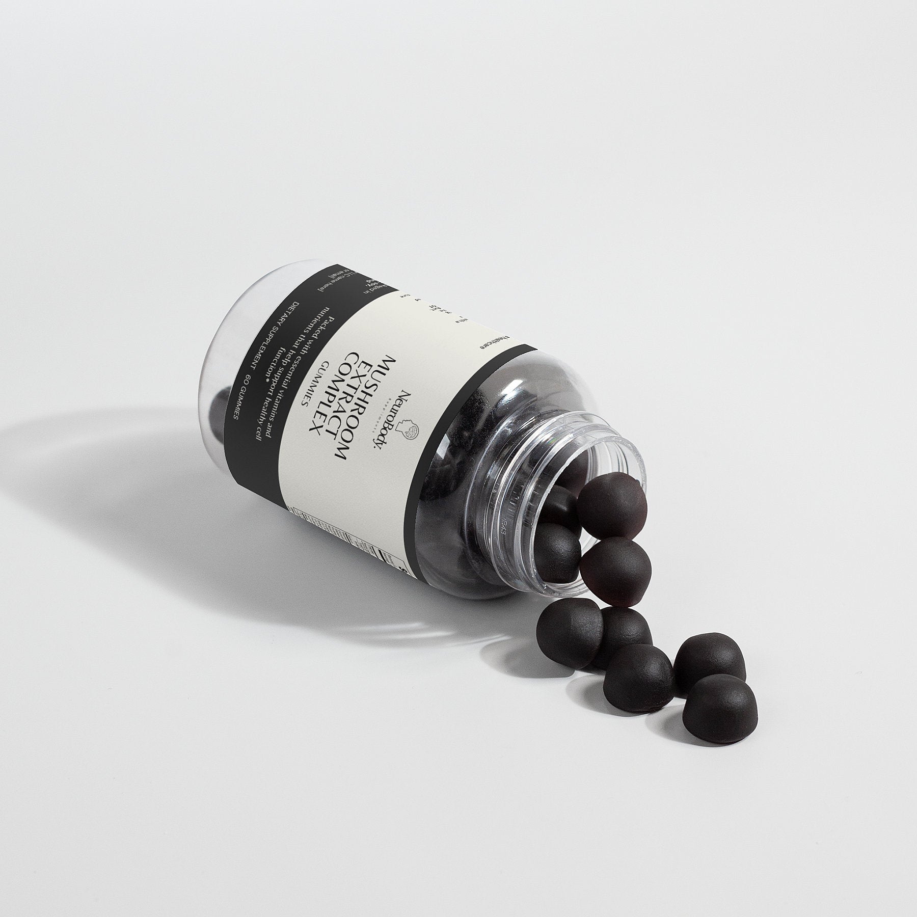 Our Mushroom Extract Complex Gummies combine the most sought-after mushrooms in the world: Maitake, Shiitake, Lion's Mane, Reishi, Cordyceps, Chaga, Turkey Tail, White Button Mushroom, Black Fungus, and Royal Sun Mushrooms.